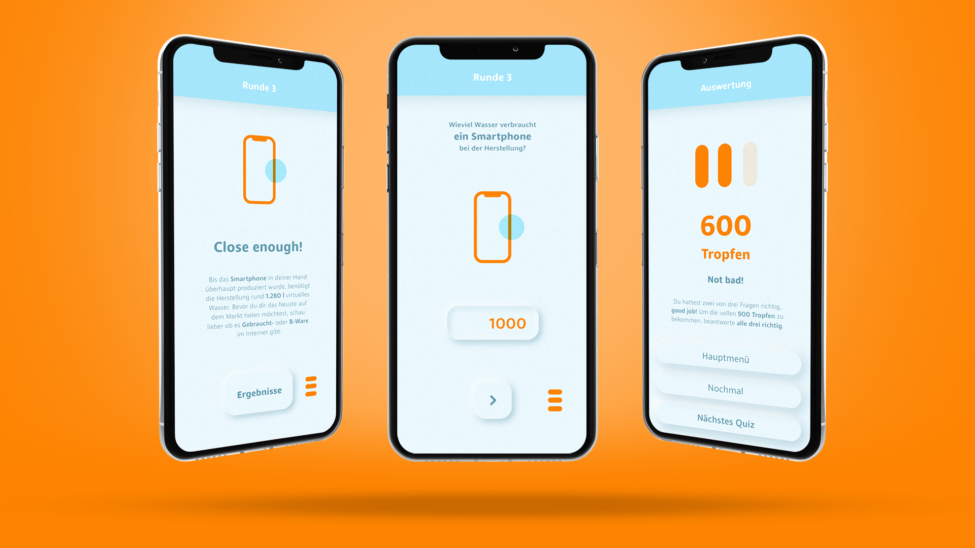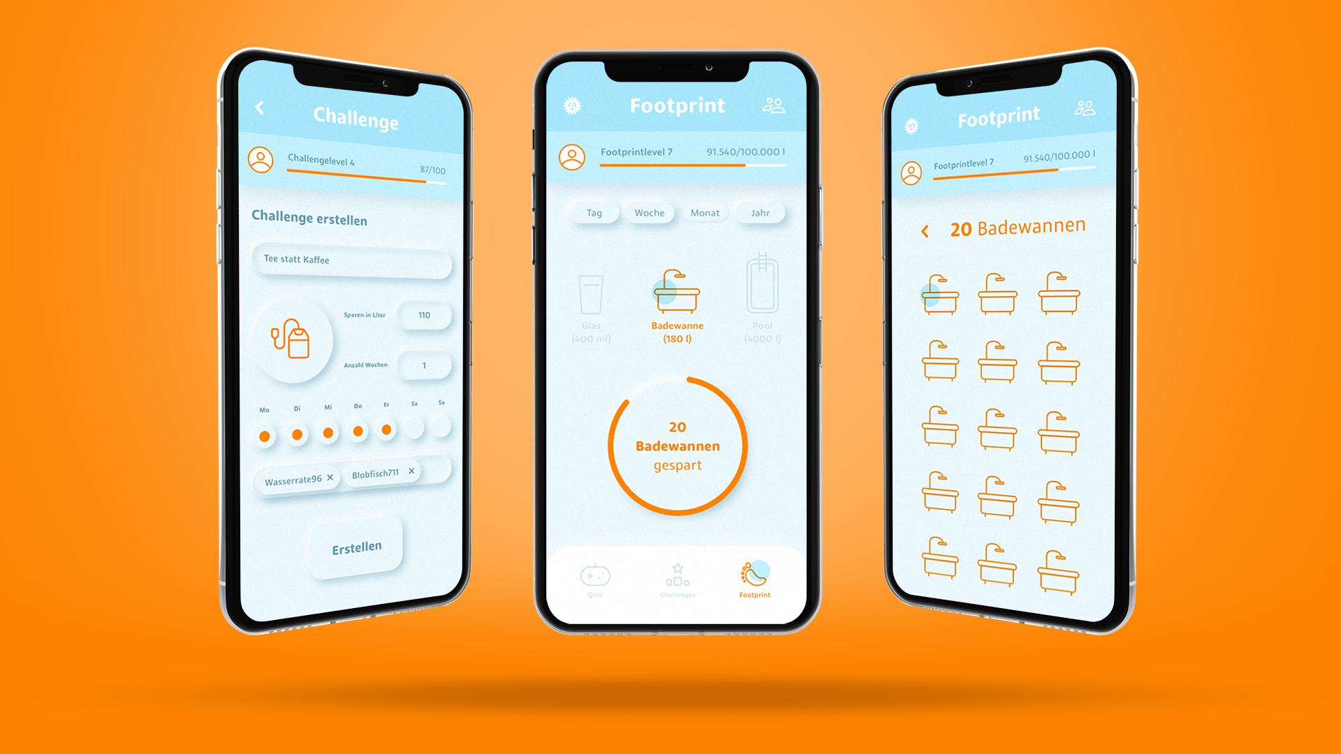 How much water is used to build a smartphone? Which amount of water is needed to manufacture the top you’re wearing? By answering questions you learn and get better. You can compete with others or challenge yourself by saving water. The app shows you how much difference you make in units of a glas of water, a bathtub or a swimming pool.